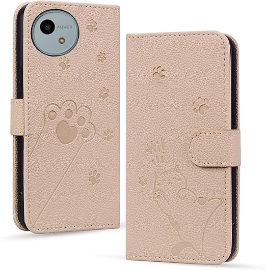 Aquos wish 5 ケース 手帳型 【Mldjomid】 wish5 カバー ウィッシュ5 ドコモ カバー 手帳型 シンプルなのに可愛猫柄 軽量 PUレザー 全面保護 スタンド機能 カード収納 Sharp AQUOS WISH5 ケース エレガントなシンプルさ 人気 上質 かわいい猫の足模様 (アプリコット) a