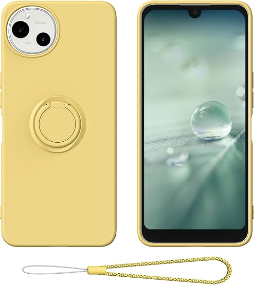 Gosento For AQUOS wish 5 ケース リング付き AQUOS wish 5 リング スマホケース 携帯ストラップ スマホリング かわいい スマホ バンカーリング スマホカバー AQUOS wish5 カバー (イエロー) a