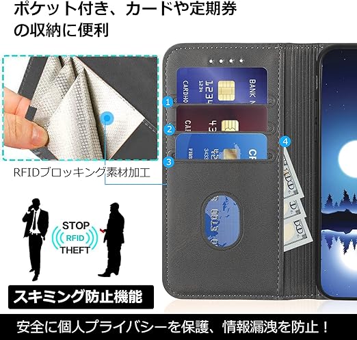 【ヴィンテージライク質感】: 外部は撥水性のある高品質なPUレザーを使用、放熱性が良く、傷や埃を防ぐことができます。ソフトケースを内蔵して、本体を傷つけず、着脱もらくらく!手帳型ならではの全面保護機能でディスプレイはもちろん、背面もしっかりガードします。さらにカメラレンズ保護構造でスマホ本体を傷から360度しっかり保護してくれます。