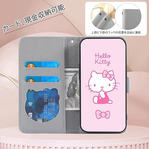 Kedic AQUOS wish5 ケース 手帳型 aquos ウィッシュ5 ケース 大きな花の顔の猫のパターン アクオスwish5ケース 手帳型 SH-52F カバー アクオスウィッシュ5 スマホカバー の選択 指紋なし 適度な厚さ 軽量グリップ 柔軟性 より包括的な保護 スマホ スタンド グレー a