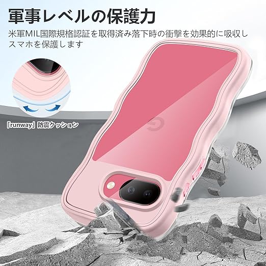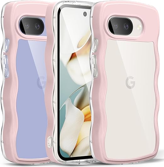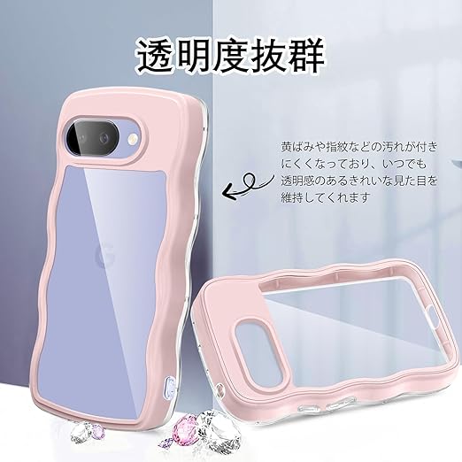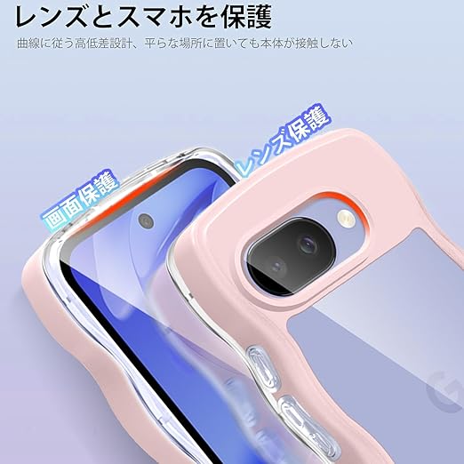 Google Pixel 9A ケース クリア ウェーブ おしゃれ 韓国 かわいい 可愛い ピクセル 9a スマホケース 人気 シンプル 滑り止め 薄型 軽量 耐衝撃 指紋防止 レンズ保護 ストラップホール付き シリコン 透明(ピンク) a