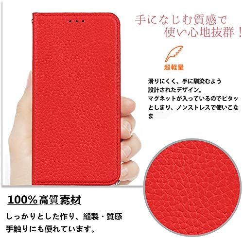 Cavor AQUOS wish5 本革ケース AQUOS wish5 ケース手帳型 AQUOS wish5 ケースカード収納 AQUOS wish5 カバー財布型 AQUOS wish5 ケースカード収納携帯カバースマホケース AQUOS wish5 手帳型ケースライチ紋真皮付きの専属ストラップ同梱なので 横置 内蔵マグネッ【レッド】 a