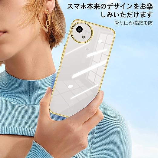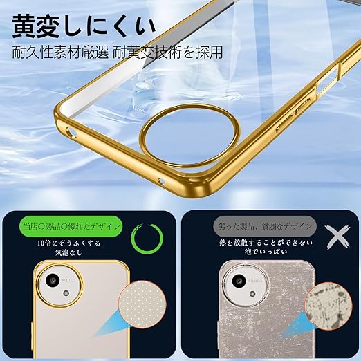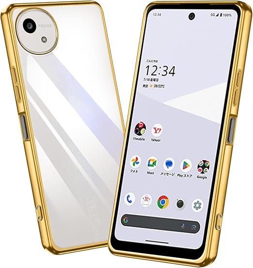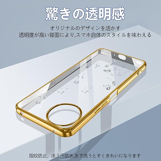 AQUOS Wish5 ケース クリア SH-52F 透明 カバー シャープ ウィッシュ5 耐衝撃 スマホケース TPU SH-52F 携帯カバー 薄型 軽量 ストラップホール付き(ゴールド) a