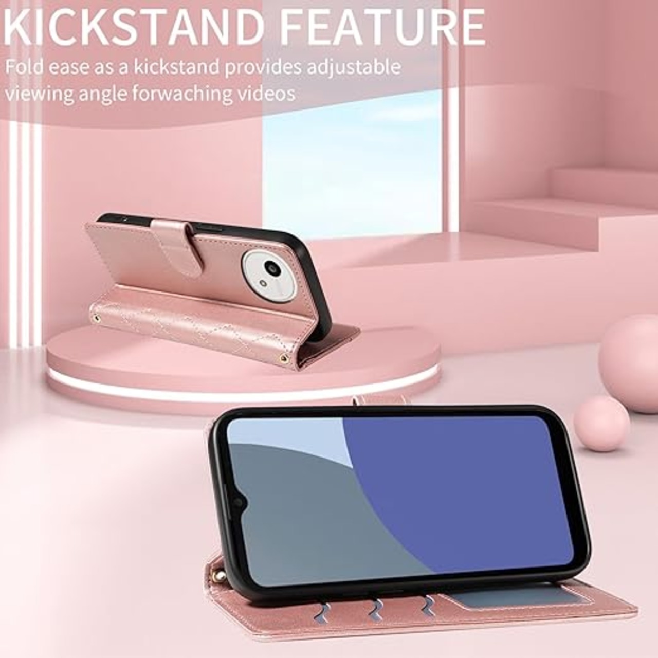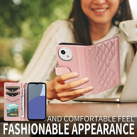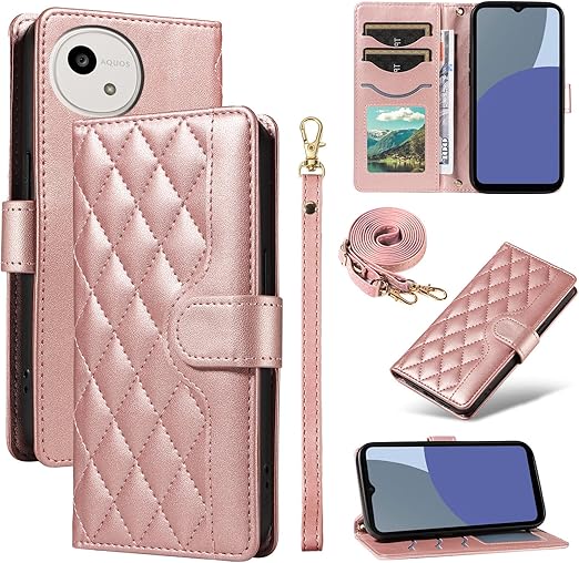 Yuotky for AQUOS Wish 5 ケース 手帳型 アクオスwish5ケース ショルダー SH-52F カバー あくおすうぃっしゅ5スマホケース 財布型 肩掛け カード収納 横置き機能 耐衝撃 携帯カバー ストラップ付き(ローズゴールド) a