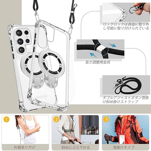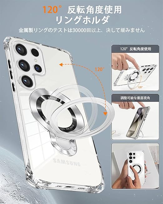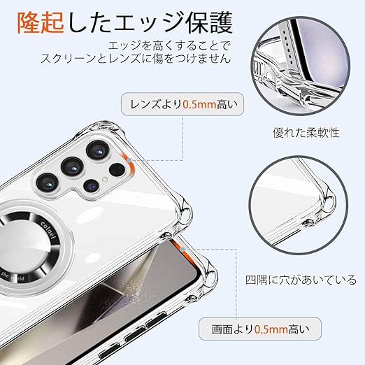 【対応機種】Galaxy s24 Ultra/s25 Ultra 専用設計。透明な背面、場所、カメラ、磁気リングはすべて高材質の材料で作られています。薄くて丈夫で柔軟性が高く、程よいグリップ感があり、本体の持つスリムさをできる限り損なわないよう設計しています。