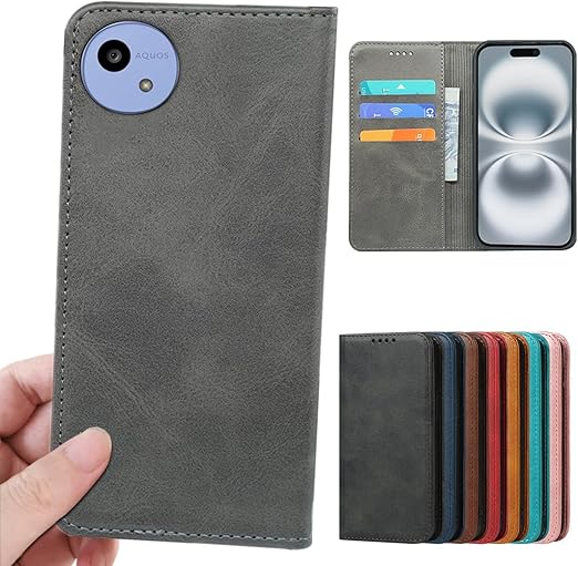 Aquos wish 5 ケース 手帳型 適用 AquosWish5 カバー 手帳 アクオスウィッシュ5 SH-52F SH-M32 手帳ケース ウィッシュ5 スマホケース アクオス ウィッシュ5 手帳カバー Wish5ケース 【GoKIGIoD】 財布型 携帯カバー 磁石付き 留め具なし 耐衝撃 マグネット カード入れ スタンド機能 レトロ グレー a