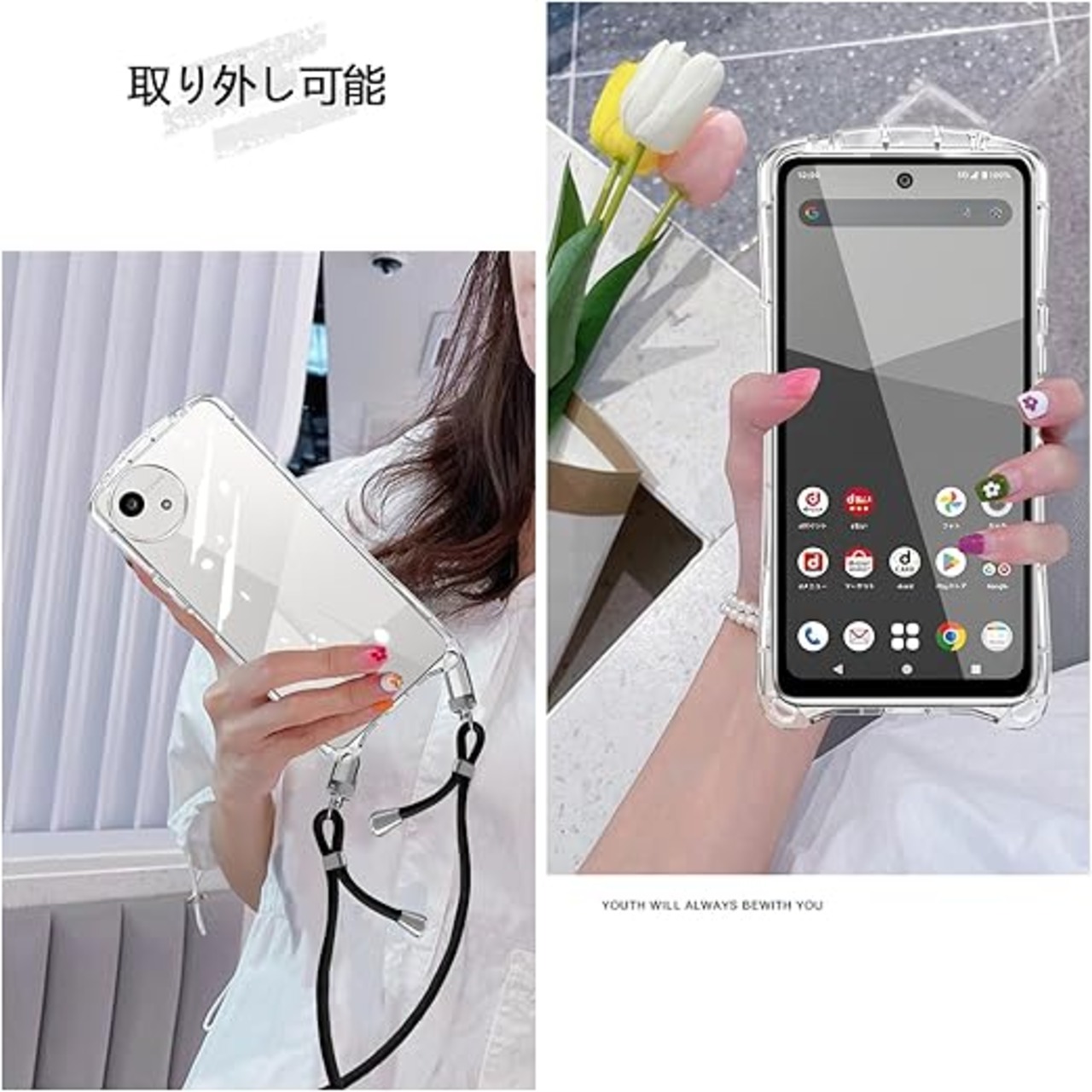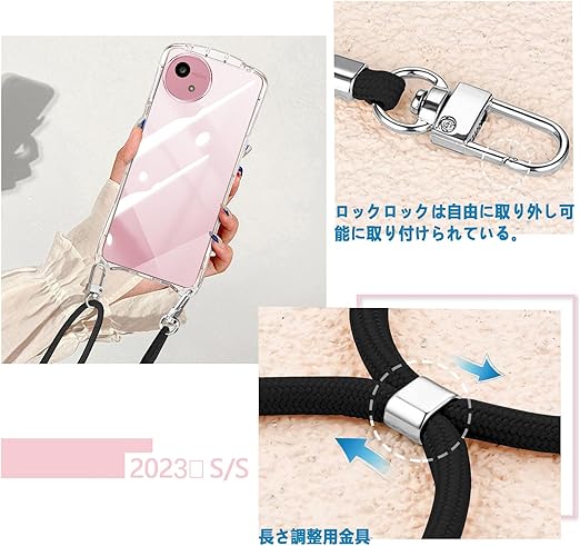 AQUOS wish5 ケース ショルダー クリア スマホケース アクオス ウィッシュ5 カバー 耐衝撃 肩掛け 首掛け 可愛い かわいい 韓国 全透明 TPU 長さ調整可能 取り外し可能(クリア) a