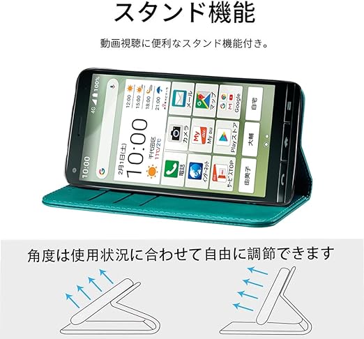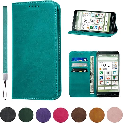 BASIO4 KYV47 ケース 手帳型 高質PUレザー BASIO4 KYV47 カバー KYOCERA BASIO 4 ケース 耐衝撃 内蔵マグネット開閉式 ベルトなし スマホケース おしゃれ カードポケット スタンド機能 便利 スプラット同梱 携帯ケース(ターコイズ) a