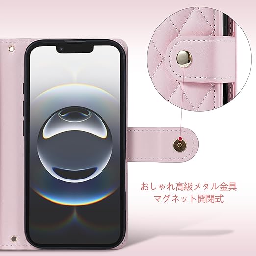 対応AQUOS Wish 5 ケース 手帳型 【Vokpok】おしゃれ高級PUレザーとメタル金具マグネット開閉式 アクオス ウィッシュ 5 財布型 ケース カード収納機能 スタンド機能 耐衝撃 耐摩擦 液晶全面保護 レンズ保護 AQUOS wish 5 スマホケース キルティグレザー調おしゃれ小香風 人気上品な シンプル気質 アクオス ウィッシュ 5 対応 6.6インチ,ピンク a