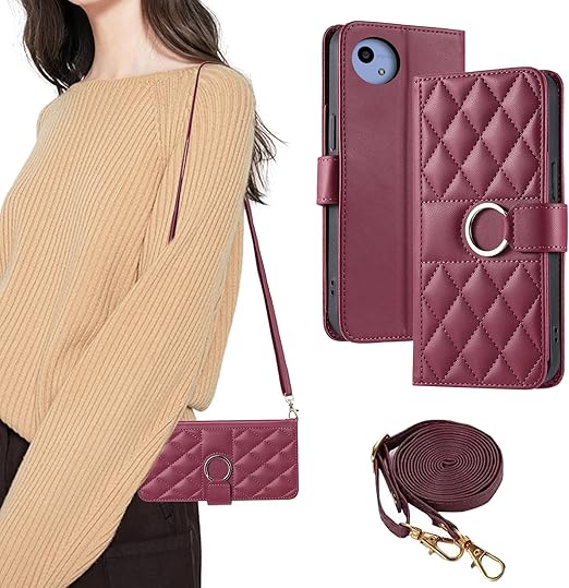 【iffeenny】AQUOS Wish5 ケース 手帳型 アクオスWish5ケース アクオス ウィッシュ5 携帯カバー AQUOSウィッシュ5 スマホケース SH-52F カバー ショルダー 耐衝撃 マグネット開閉 斜めストラップ付き カード収納 スタンド機能 6.6インチ c