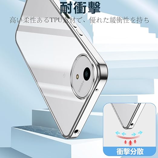 For AQUOS wish5 ケース クリア アクオスウィッシュ5 SH-52F ソフト ケース クリスタル 透明 TPU 素材 保護 カバー AQUOS Wish 5 対応 ストラップホール付 (シルバー) a