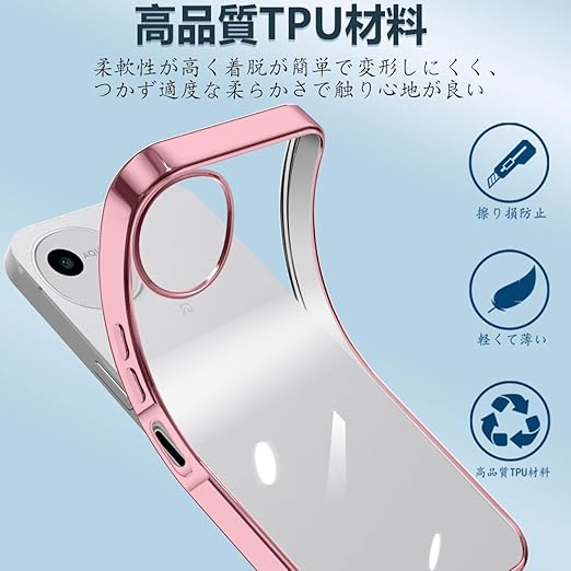 For AQUOS wish5 ケース クリア アクオスウィッシュ5 SH-52F ソフト ケース クリスタル 透明 TPU 素材 保護 カバー AQUOS Wish 5 対応 ストラップホール付 (ローズゴールド) a