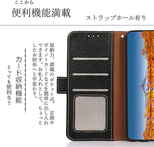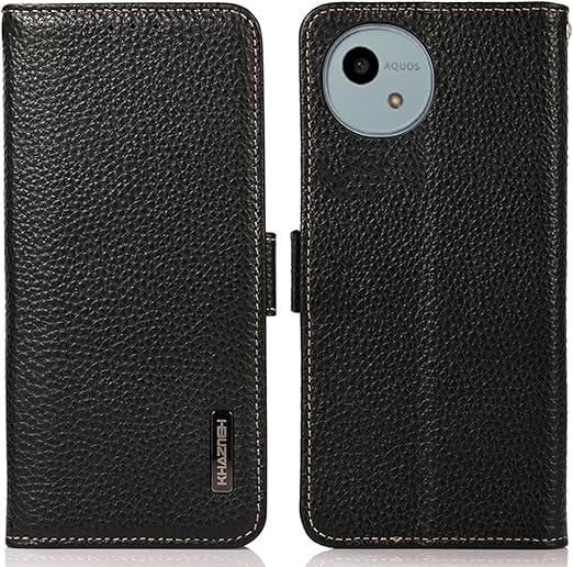for AQUOS Wish 5 ケース 手帳型 本革 アクオス ウィッシュ5 SH-52F カバー 財布型 ケース 高級本皮 シュリンクカーフレザー シンプル手帳ケース 耐摩擦 サイドマグネット式 カード収納 大容量 3枚 横置きスタンド機能 耐衝撃 Ayakumo ブラック a