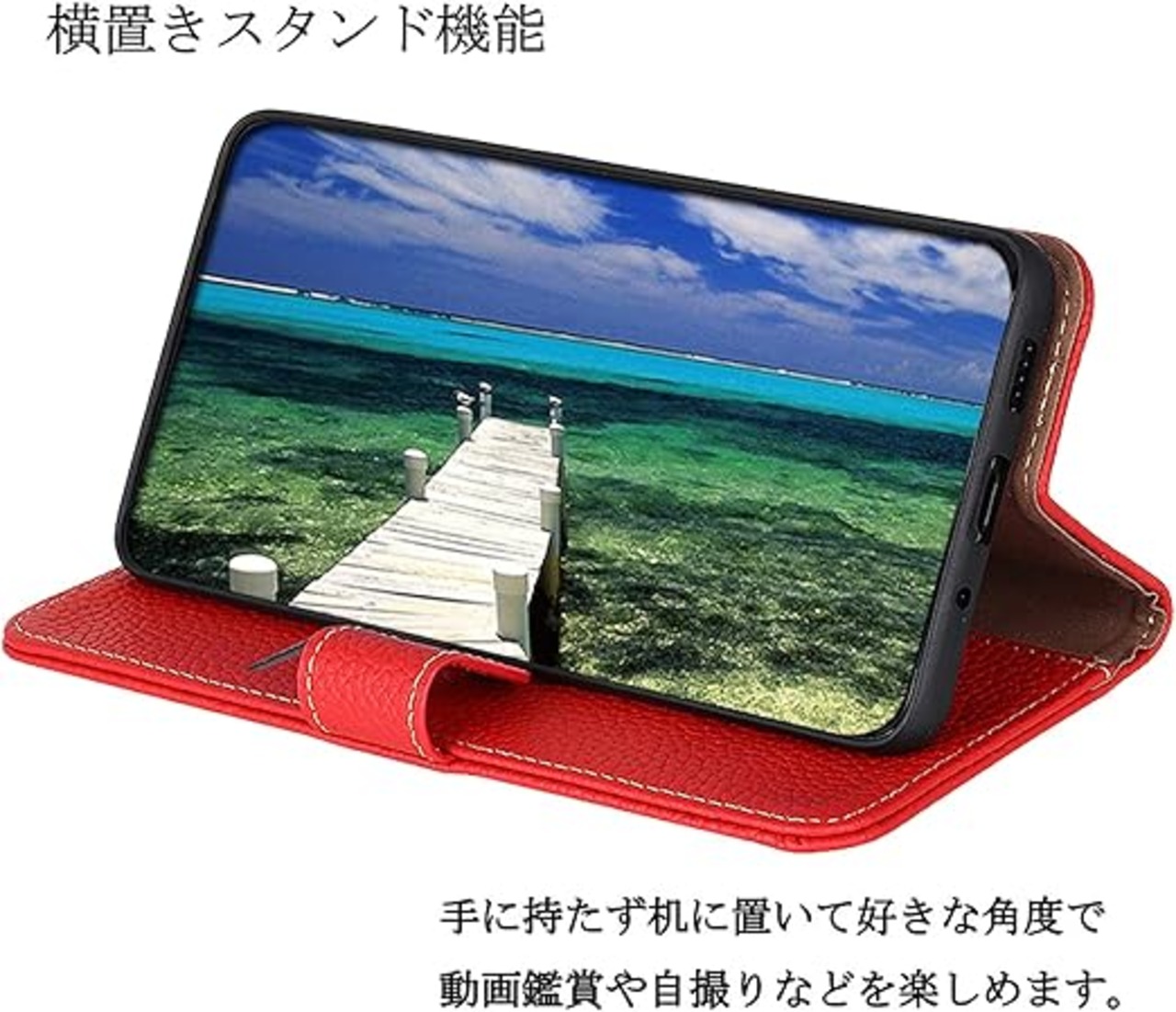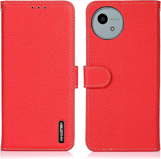 for AQUOS Wish 5 ケース 手帳型 本革 アクオス ウィッシュ5 SH-52F カバー 財布型 ケース 高級本皮 シュリンクカーフレザー ライチ柄 良い触り心地 サイドマグネット式 2枚カード収納 横置きスタンド機能 耐衝撃 Ayakumo レッド a