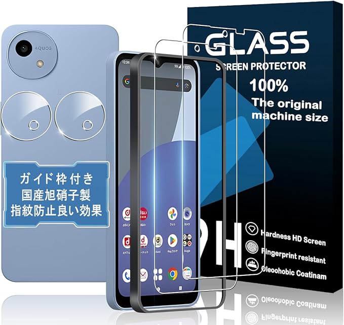 対応 AQUOS wish5 ガラスフィルム ガイド枠付き 【2+2枚セット-国産旭硝子素材】AQUOS wish 5 SH-M32 【2枚液晶保護+2枚レンズ保護+ガイド枠】 指紋防止 強化ガラス 液晶保護 硬度9H 耐衝撃 飛散防止 貼り付け簡単 自動吸着 気泡ゼロ ラウンドエッジ加工 超高質感 JCJCLY-WISH5 a