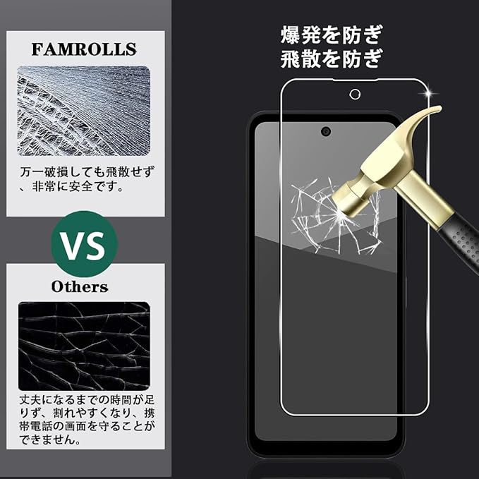 【対応機種】 AQUOS Wish 5 SH-52F / SH-M32 専用。素材に日本製の旭硝子を採用。【四枚セット】 2枚 用 AQUOS Wish5 強化ガラスフィルム+ 2枚カメラ保護フィルム。【FAMROLLS正規品】スマホの周辺アクセサリーを長年手掛けるFAMROLLSメーカーの人気スマホガラスフィルムです。安心してご注文ください。