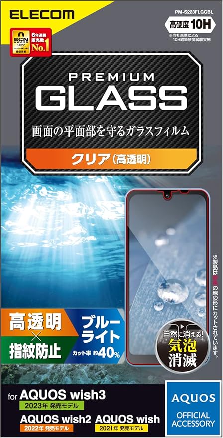 エレコム AQUOS wish3(SH-53D)/AQUOS wish2 (SH-51C) / wish (SHG06 A104SH SH-M20) ガラスフィルム 硬度10H ブルーライトカット 指紋防止 エアーレス PM-S223FLGGBL クリア a