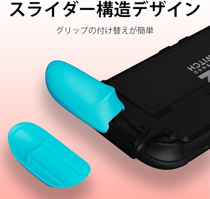 「使いやすさを追求した設計」スライド式でグリップ交換が簡単。本体のカードスロット、通気口、ボタン、背面のスタンドを一切妨げず、装