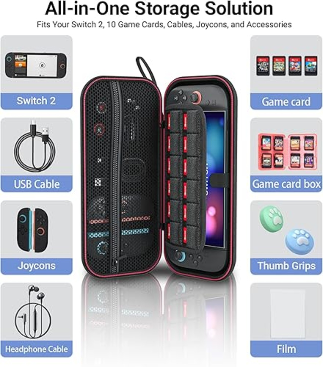 Switch 2対応 ゲームカード収納&画面保護フィルム2枚付属 ハードシェルキャリーケース - Nintendo Switch 2用 旅行用収納ケース 2025年必須アクセサリーセット