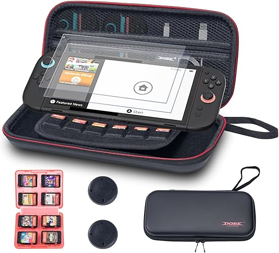 Switch 2対応 ゲームカード収納&画面保護フィルム2枚付属 ハードシェルキャリーケース - Nintendo Switch 2用 旅行用収納ケース 2025年必須アクセサリーセット a