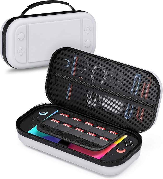 STARTRC GAMES Switch 2 ケース Switch 2025 収納バッグ スイッチ2 キャリングケース PU 素材 防塵 耐衝撃 大容量 10枚ゲームカードスロット 軽量 旅行用 持ち運び便利 (ホワイト) a