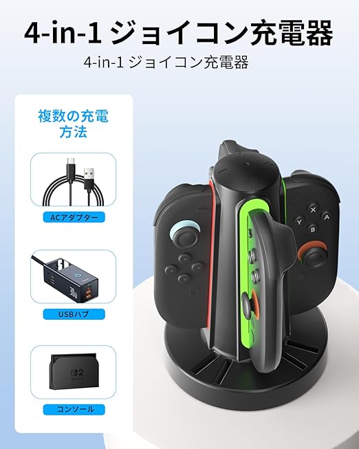 【スイッチ 2 Joycon専用・4台同時充電対応ドック】スイッチ 2専用に設計された高性能充電スタンド。最大4台のJoyconを同時に安定充電でき、家族や友人とのマルチプレイにも最適です。スイッチ 2ユーザーにとって、ゲームライフを快適にする必須アクセサリー!