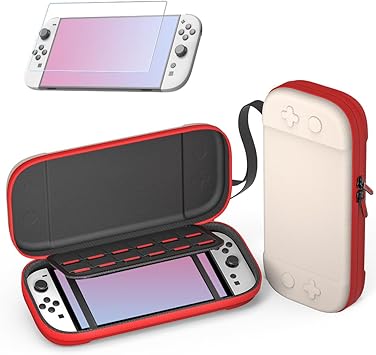 SWITCH 2 ケース+ 1枚 HDガラス強化保護フィルム Ninten-do Switch 2 用 保護ケース カバー EVA 収納バッグ 防塵 防水 耐衝撃 軽量 全面保護型 持ち運び便利 (Beige) a