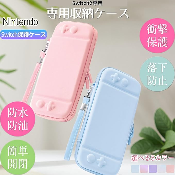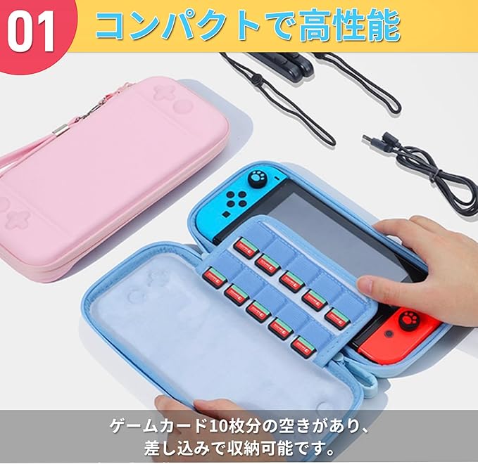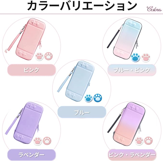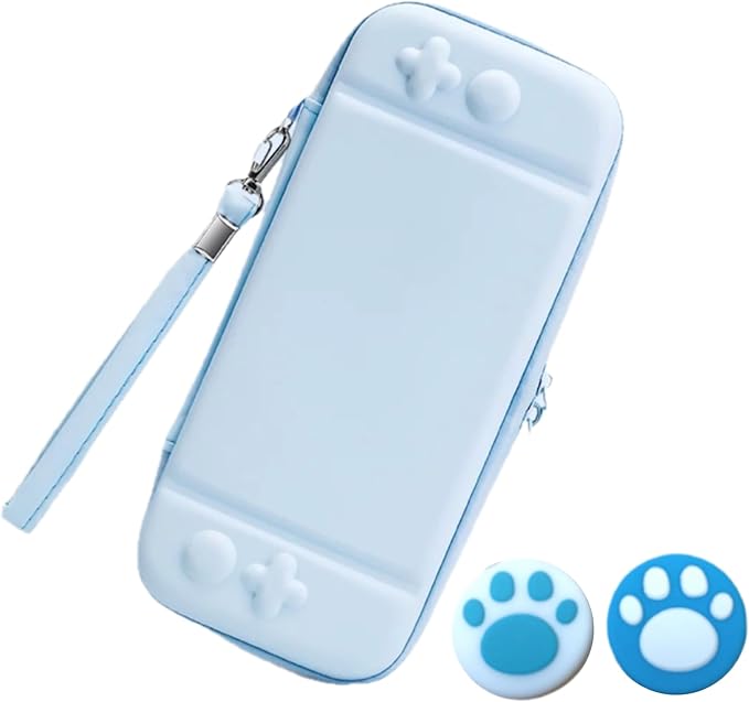 【スイッチ2専用】?SWITCH2 専用収納ケース 保護カバー 持ち運びキャリングケース 肉球ジョイコンキャップ2個付 (水色ブルー) a
