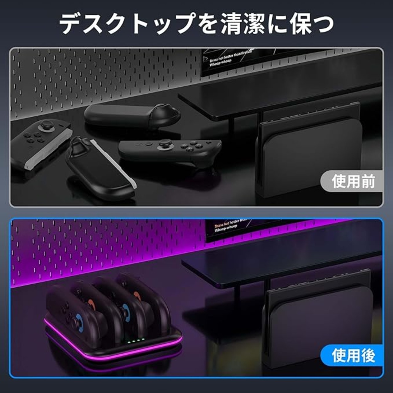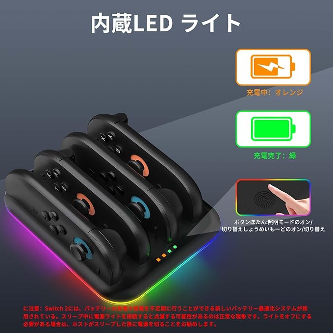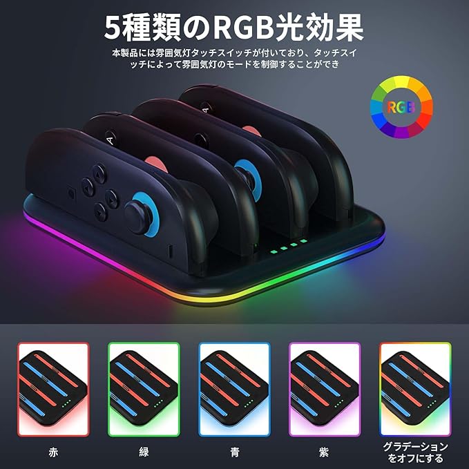 Switch 2 ジョイコン用 充電器【2025新登場】PhyiFlbey ニンテンドースイッチ2 用 4in1 収納 一体型 Switch 2 充電スタンド RGB雰囲気灯付き 急速充電 取付簡単 省スペース Switch 2 周辺機器対応 黒 a