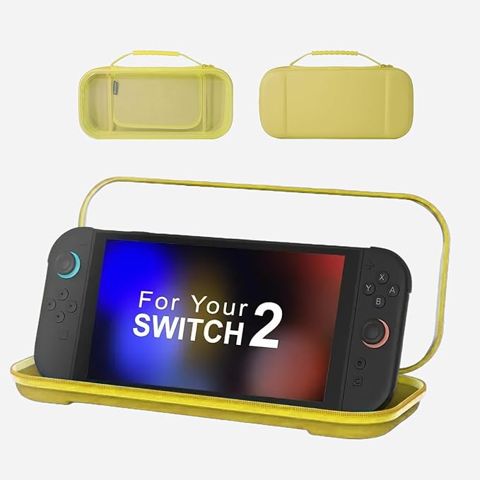 Gearsir 【令和7年新登場】Switch2対応 ケース スイッチ2専用クリアキャリーケース EVAハードシェル 軽量Switch 2専用 スリムハードポーチ スイッチ 2対応 透明収納バッグ 保護 大容量 防塵 防水 防振 12ゲームカードスロット ハンドル付き携帯便利 旅行には必須 (イエロー) a