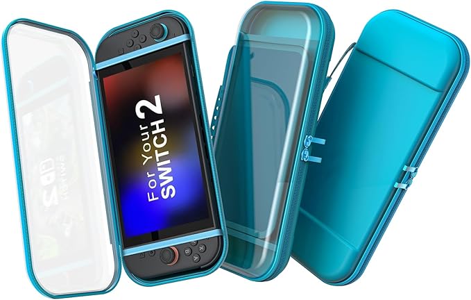 Gearsir 【令和7年新登場】Switch2対応 ケース スイッチ2専用クリアキャリーケース EVAハードシェル 軽量Switch 2専用 スリムハードポーチ スイッチ 2対応 透明収納バッグ 保護 大容量 防塵 防水 防振 12ゲームカードスロット ハンドル付き携帯便利 旅行には必須 (ブルー) a