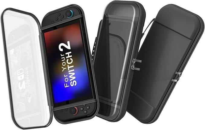 Gearsir 【令和7年新登場】Switch2対応 ケース スイッチ2専用クリアキャリーケース EVAハードシェル 軽量Switch 2専用 スリムハードポーチ スイッチ 2対応 透明収納バッグ 保護 大容量 防塵 防水 防振 12ゲームカードスロット ハンドル付き携帯便利 旅行には必須 (ブラック) a