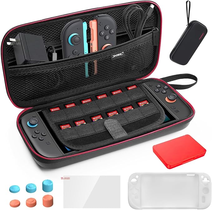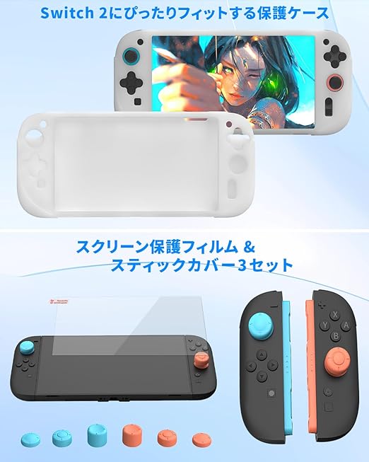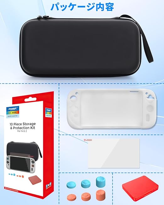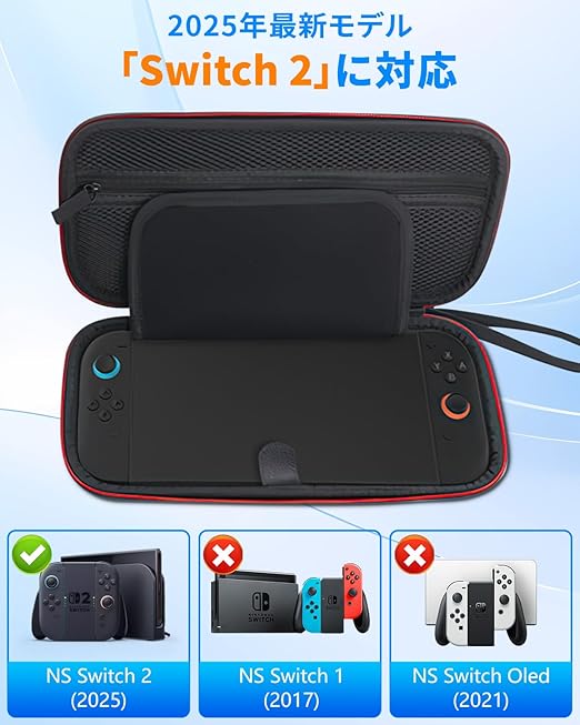 【switch 2 ケース】 switch 2専用 収納ケース キャリングケース 耐衝撃ポータブルバッグ 大容量EVA素材 軽量設計 ソフト12枚収納 ダブルファスナー メッシュポケット付き 外出旅行用 保護フィルムとカバー付属 a