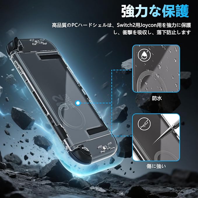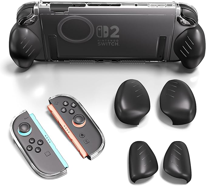 専用デザイン:クリアケースと交換用グリップは、Nintendo Switch 2 用(2025年発売予定)専用に設計されています。取り付けが簡単なスナップオン設計で、便利で実用的です。