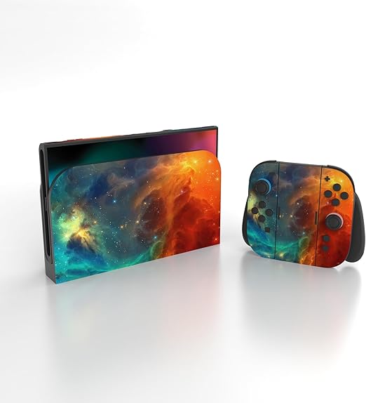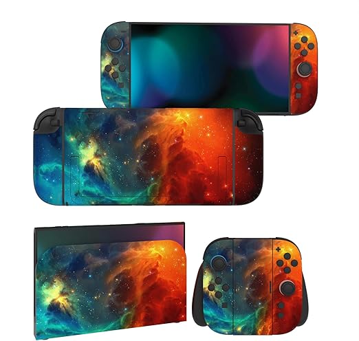 PlayVital Nintendo Switch 2(2025)本体・Joycon対応 フルセット保護ステッカーシール 2セット カスタマイズ用ビニールステッカー ドック&グリップスシール付き【オレンジスター ユニバース】 a