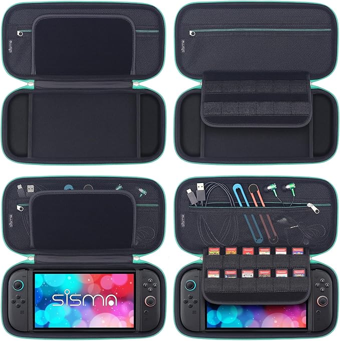 sisma スリムケース Switch 2 専用 セミハードケース Switch2 本体収納ポーチ 保護 ケース 耐衝撃 薄型 ポーチ『緑』 a