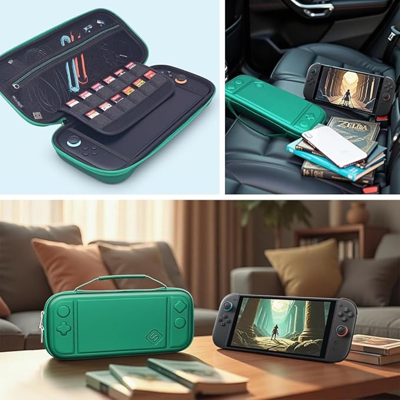 イヤホン、アクセサリー、充電ケーブルやクリーニングクロスなどが入るジッパーメッシュポケットを備えています。12枚のゲームソフトを収納可能!弾力性ポケットを採用し、ゲームカードをしっかり包み込み、キズや汚れから保護します。