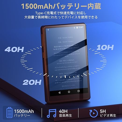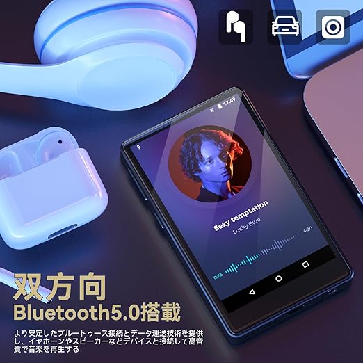 【Android 8.1搭載&双方向Bluetooth5.0バージョン&車載 bluetooth対応】MP3プレーヤーはBluetooth5.0を搭載しており、より安定したブルートゥース接続とデータ運送技術を提供します。MP3プレーヤをイヤホーンやスピーカーなどデバイスと接続して高音質で音楽を再生することができますし、車の純正ナビオーディオとペアリングも実現できます。その同時に、このMP3プレーヤーはAndroid8.1を搭載して、デバイスのインターフェースと設定をカスタマイズすることができて、