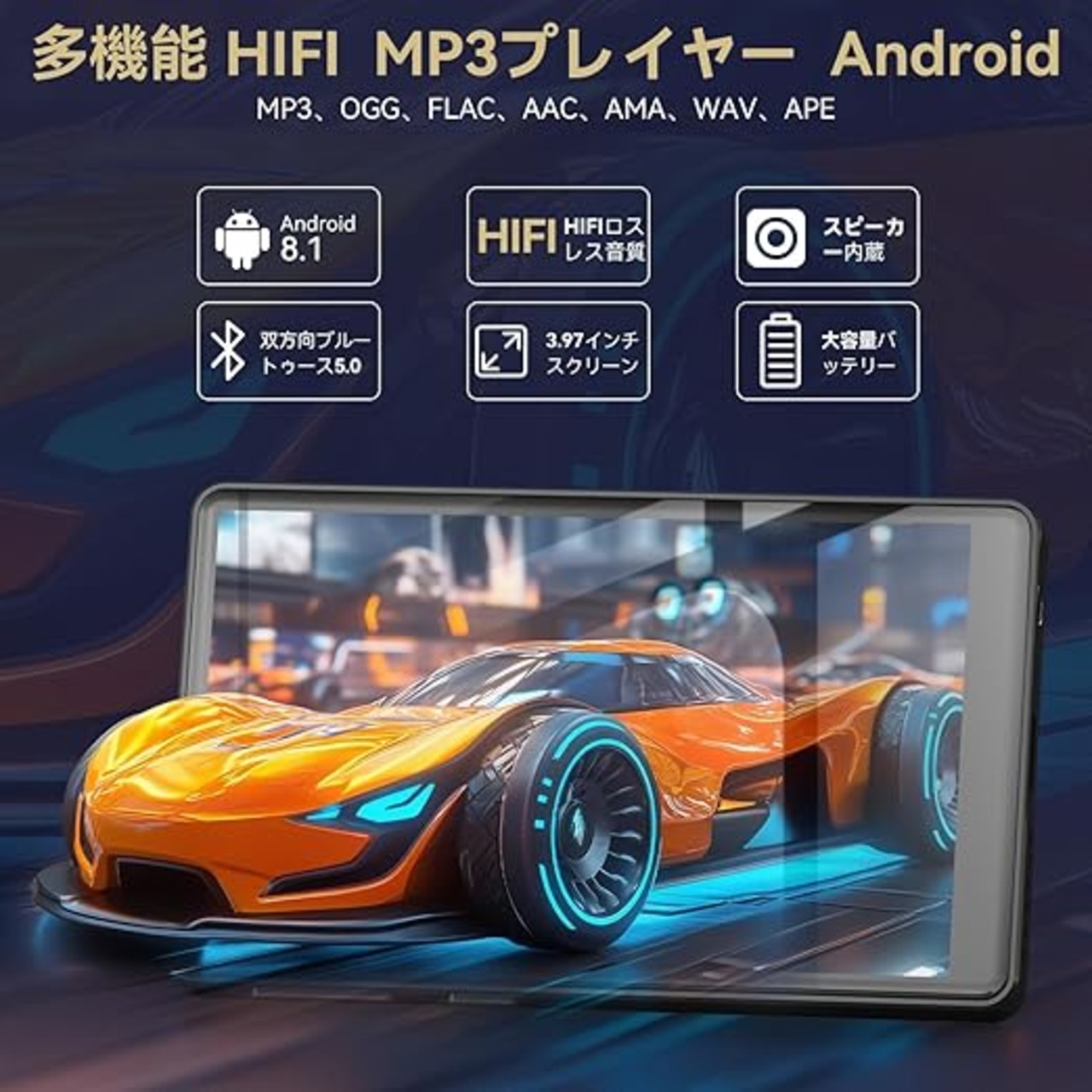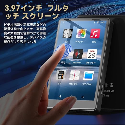 mp3プレーヤー Android搭載 bluetooth 5.0 音楽プレーヤー 【車載 bluetooth対応 HIFIロスレス音質】デジタルオーディオプレーヤー 内蔵スピーカー 3.97インチ フルタッチスクリーン 8GBメモリー内蔵 1500mAh大容量 TypeC充電式 ダイレクト録音 音楽/ビデオ/写真/FMラジオ/電子ブック 通勤 通学 語学学習 散歩 スポーツ 子供向け 日本語説明書 a
