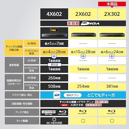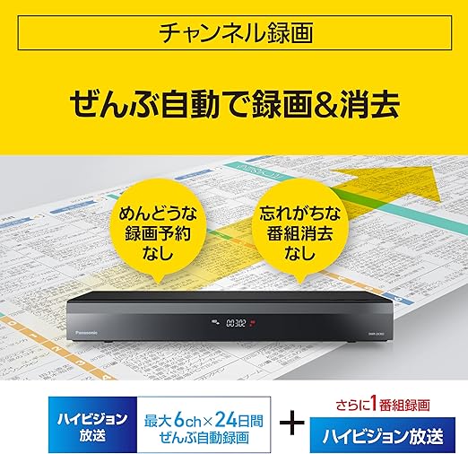 パナソニック 3TB 7チューナー ブルーレイレコーダー 全録 6チャンネル同時録画 どこでもディーガ対応 全自動DIGA DMR-2X302 a