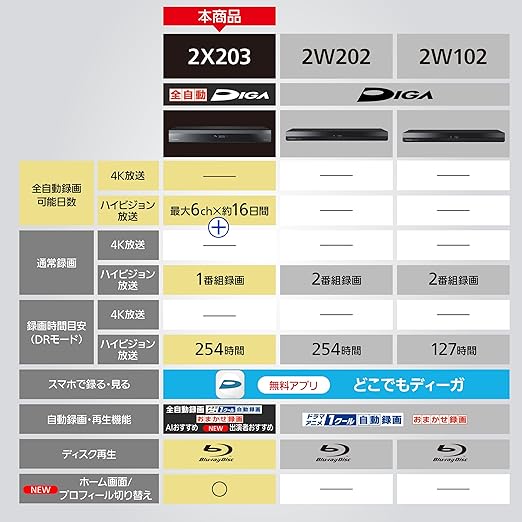 パナソニック 2TB 7チューナー ブルーレイレコーダー 全録 6チャンネル同時録画 どこでもディーガ対応 全自動DIGA DMR-2X203 a