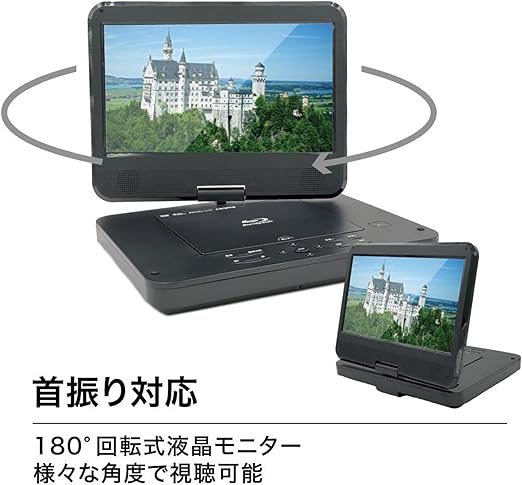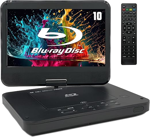 東京Deco 10インチ ポータブル ブルーレイプレーヤー 10型 HDMI出力対応 高精細 DVDプレーヤー 10インチ 270度回転 TFT液晶 CPRM 3時間連続再生 バッテリー内蔵 車載可能 CPRM イヤホンジャック入力/AV入出力 3電源対応 blu-ray BD tk037 a