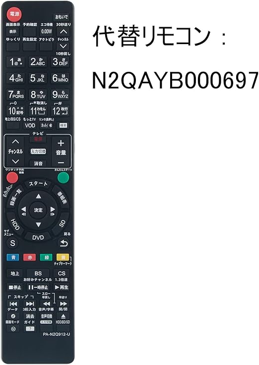 PerFascin 代替リモコン FITS FOR N2QAYB000697 Panasonic パナソニック ブルーレイディスクレコーダー a