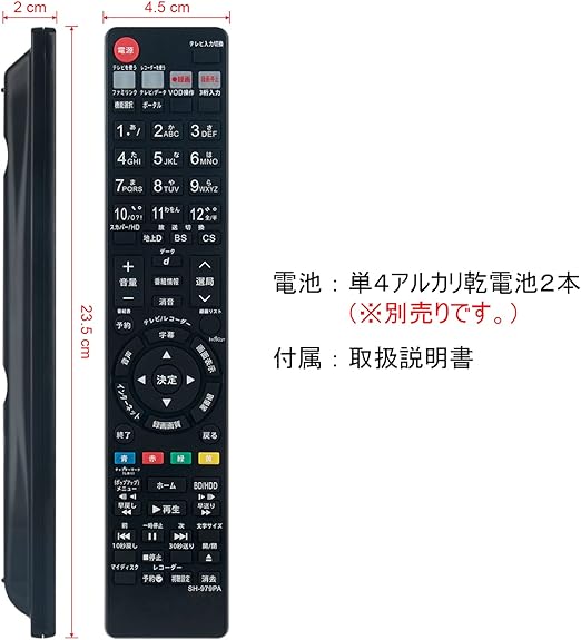 PerFascin 代替リモコン FITS FOR GA979PA シャープ SHARP BDレコーダー 0046380245 BD-W1000 BD-W1100 BD-W2000 BD-W500 BD-W510 a