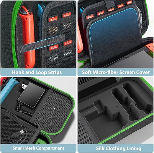 【Switch/スイッチ有機elモデル対応 Switch 2非対応】Switch ケース OIVO スイッチ収納ケース キャリーケース 防水 防塵 防汚 耐衝撃 全面保護 大容量 持ち運び便利 本体/Joy-Con/電源アダプタ/20枚ゲームカード/ケーブル/イヤホンなど全部収納可能 緑色 a