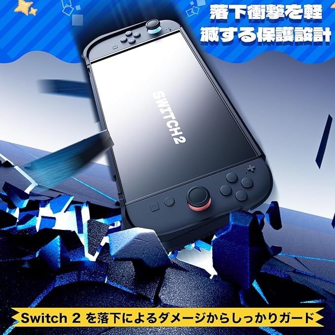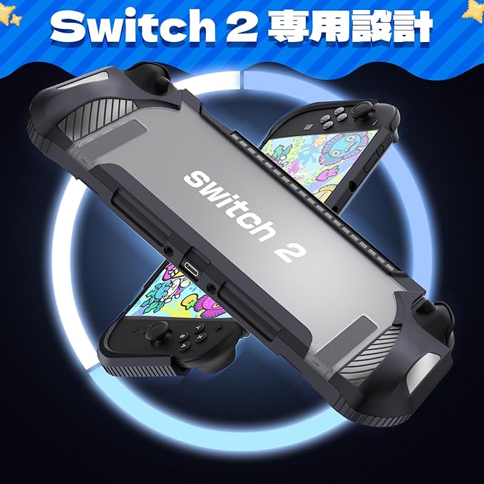 【TPU素材の柔らかいケースで耐衝撃】 柔らかく耐久性に優れたTPU製Switch 2 カバーが、落下や摩擦から本体とジョイコンを守ります。人間工学設計、長時間のプレイでも指が疲れにくく、快適にゲームを楽しめます。