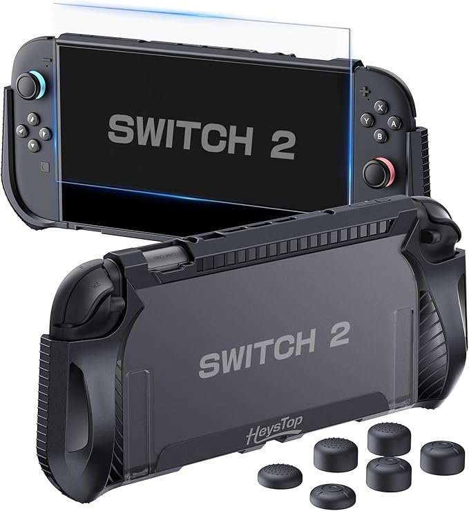 HEYSTOP Switch2 カバー 保護 Switch2 対応 Switch 2 カバー+Switch2ガラスフィルム1枚+親指キャップ+アルコール綿 防塵 防汚 耐衝撃 着脱簡単 全面保護 軽量 薄型 透明 滑り止め ソフト/ケーブル/イヤホンなど収納可能 a