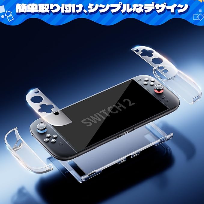 Switch 2 カバー HEYSTOP Switch 2対応 ケース キーボードキーキャップ付き 保護カバー スイッチ 2用 耐衝撃 軽量 薄型 透明 スイッチ 2 カバー+Switch 2ガラスフィルム1枚+親指キャップ ドック対応 着脱簡単 スタイリッシュデザイン 指紋防止