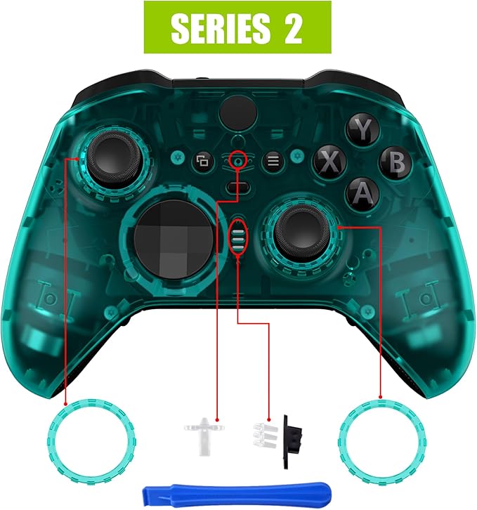 eXtremeRate xbox one elite series 2 (モデル1797)コントローラーに対応用無地の交換フェースプレートシェル、xbox elite series 2 coreコントローラーに対応用ソフトタッチ正面シェルケース&アクセントリング「クリアエメラルドグリーン」 a