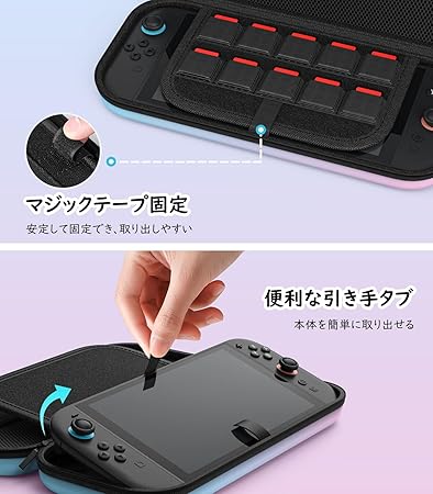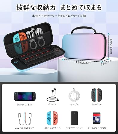MoKo Switch2 ケース スイッチ2 ケース キャリングケース 第2世代保護カバー 収納バッグ 防塵 防汚 耐衝撃 ストレージカバー EVA素材 耐衝撃 全面保護 大容量 ゲームカード ソフト/ケーブル/イヤホンなど小物収納可能 持ち運び便利 BluePinkGradation a